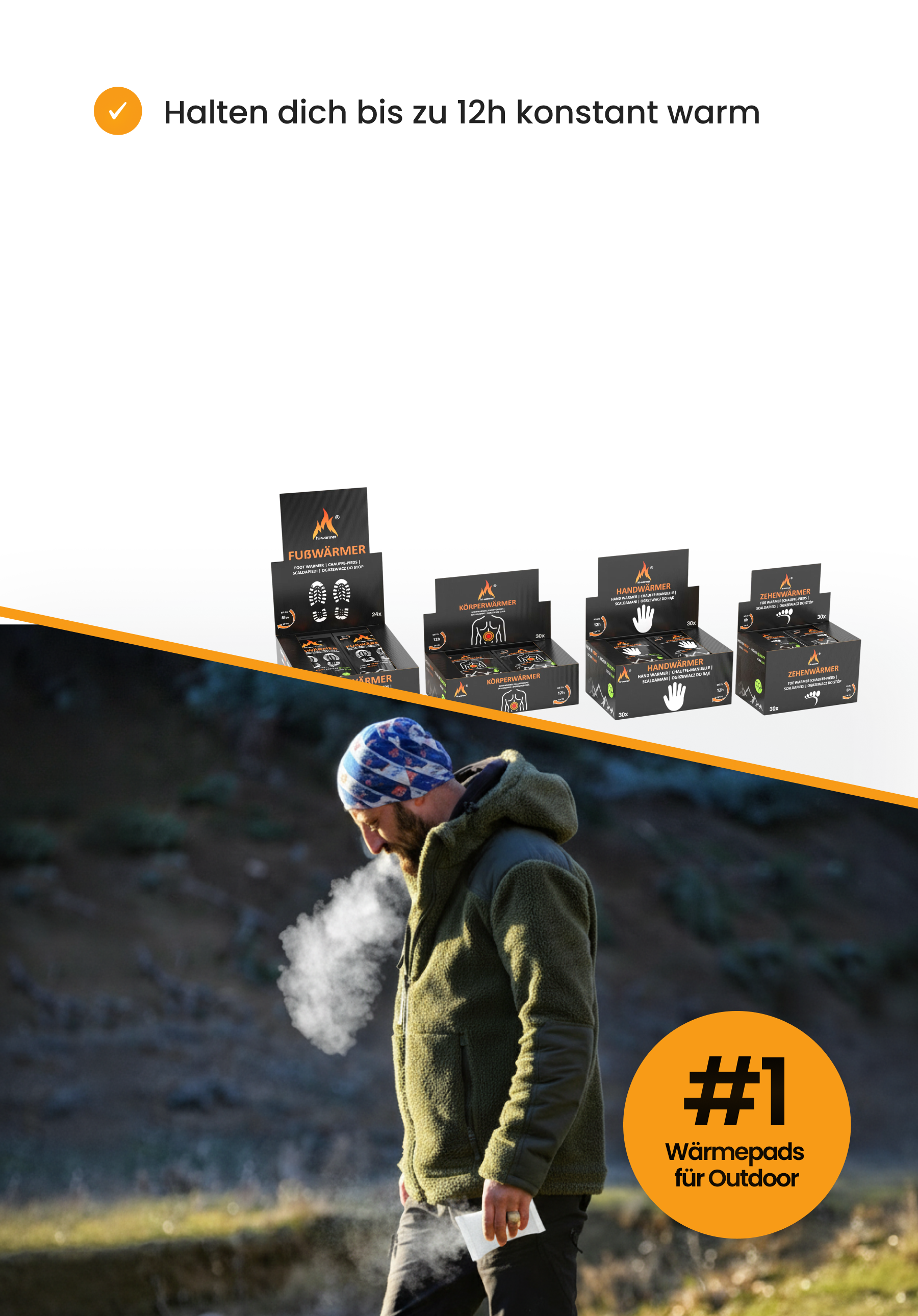 Früh los, spät zurück.hi-warmer® liefert gleichmäßige Wärme über Stunden, ohne Leistungsabfall, ohne Überraschungen, unabhängig davon, ob du in Bewegung bist oder pausierst.